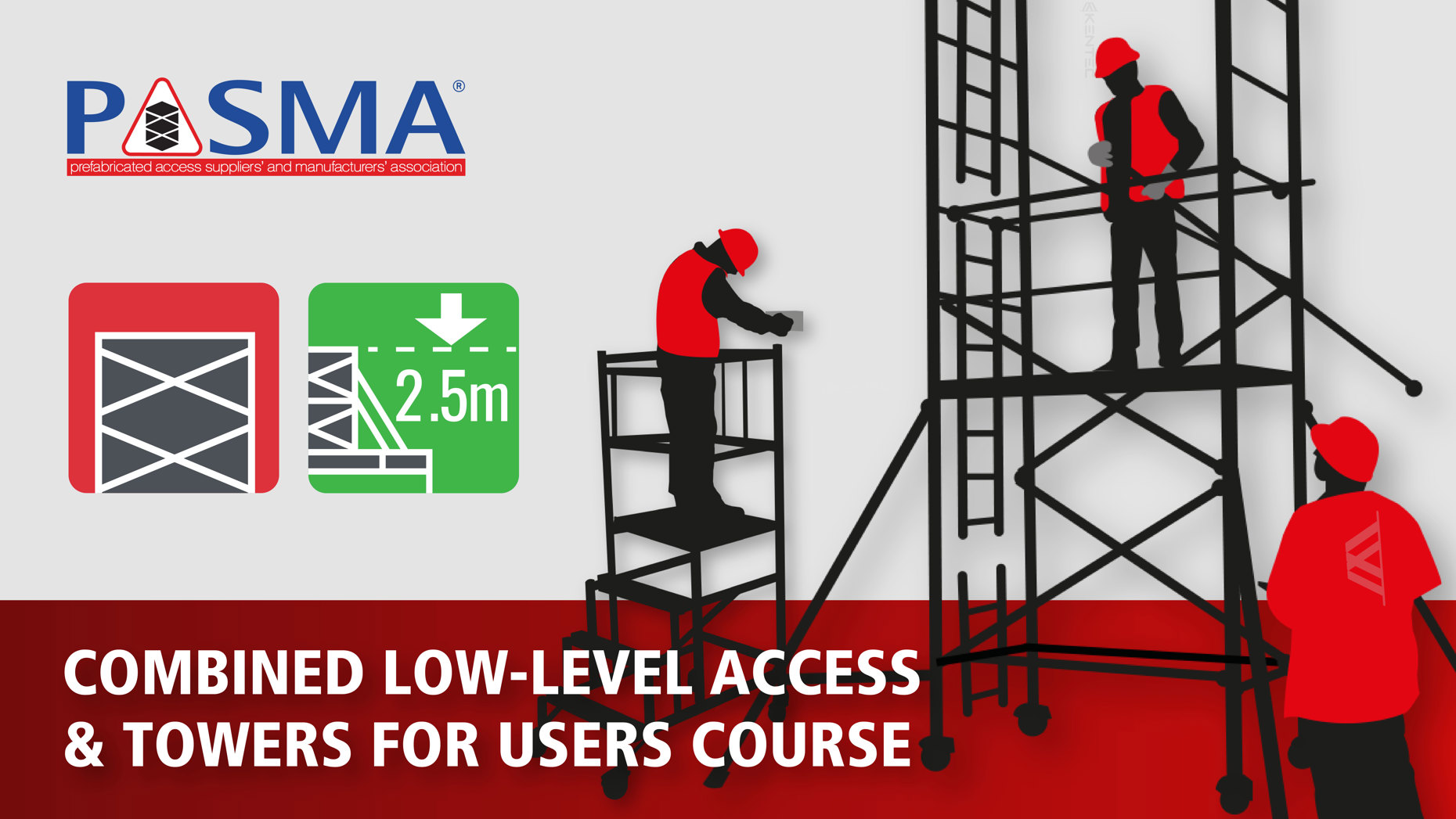 Our PASMA Combined Low-Level Access and Towers for Users Course delivers a minimum of 6 hours of instruction and is designed to instruct up to a maximum of 8 delegates. This course is aimed at giving FULL competence in assembling, altering, inspecting, moving and dismantling mobile towers, folding low level room scaffolds and podium work platforms manufactured in aluminium alloy or fibreglass, approved to BS EN1004-1:2020 or Low Level Access Units approved to BS 8620 or other equivalent mark of approval.